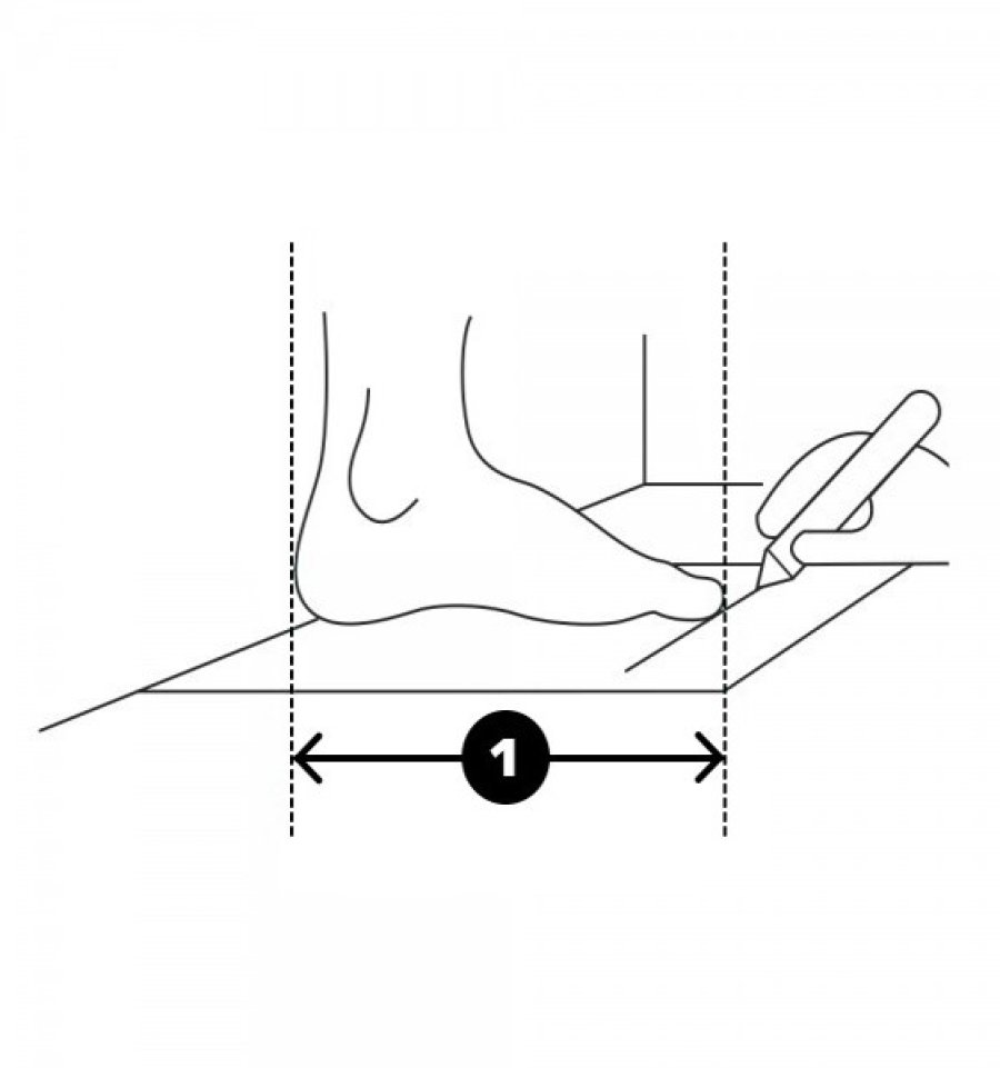 4. Затем используйте ручку, чтобы нарисовать линию прямо перед большим пальцем ноги. Повторите для обеих ног и выберите большее расстояние, чтобы определить свой размер.